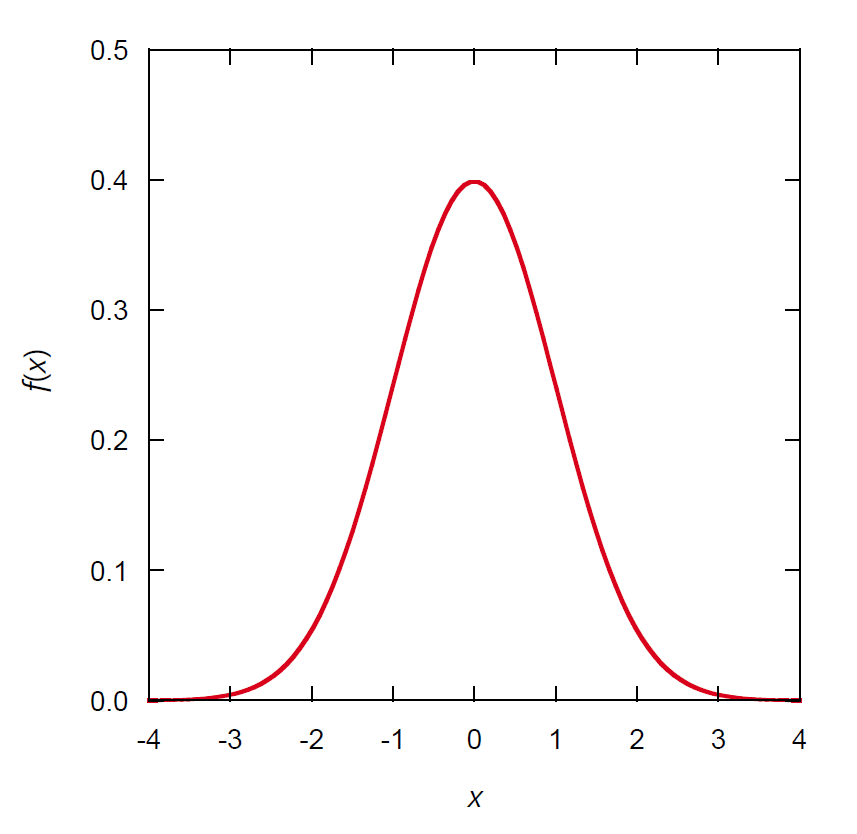 これを標準正規分布 standard normal distribution と呼び、標準正規分布に従うランダム変数を標準正規変数と呼ぶ。