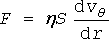 粘さといってもこのように単純ではありませんが、水やトルエンなど同種の粒子、あるいはあまり大きさの違わない分子の混合物からなる液体の場合には、おおむねニュートン流体としてふるまい、図の直線Aの勾配で粘さを評価できます。 液体の内部に注目すると、棒の回転速度 vθ を大きくすることは、液体の運動速度の距離による変動を大きくすることに相当します。 働く力は棒の表面積 S に比例しますから、液体の性質としての粘さは