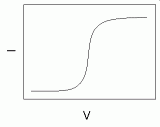 拡散の問題がもっとも顕著に現れるのは、おそらく電気分解においてでしょう。 直径が 10 μm 以下程度の微小な電極を負極にして溶液の電気分解を行うと、電圧を徐々に変化させていった時、図のような電流の変動が現れます。 電流値が急速に増大するのは、溶液中に溶けている酸化剤の還元が起きはじめる電圧です。 そしてある電流値に達すると、電圧を大きくしても電流値の増加は認められなくなります。 この電流が頭打ちになる現象は電極付近の酸化剤濃度がほぼ 0 になり、溶液中からの拡散による酸化剤の供給が全体の速度を決めていること、律速段階になっていることを意味しています。 この電流値を限界電流と呼び溶液中の酸化剤濃度に比例することが知られています*。