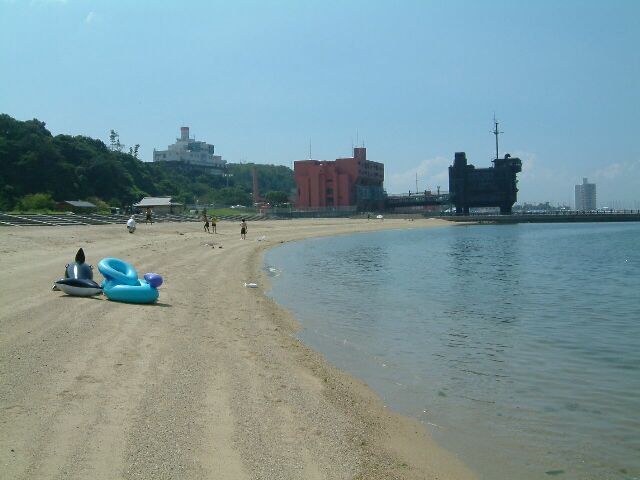 歩いて5分。近くの海水浴場。海水浴シーズンが終わり、今は釣りの季節へ。