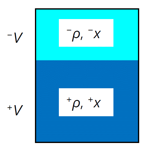 \begin{equation} n_\mrm{A} = (1 - x) V \rho = {}^- V {}^-\rho_\mrm{A} + {}^+ V {}^+\rho_\mrm{A} \label{eq:total_mfraa} \end{equation}
